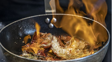 Crustacés, pâtes « alle vongoles », gambas, Escalopes, Tagliata et autres grillades de bœuf.